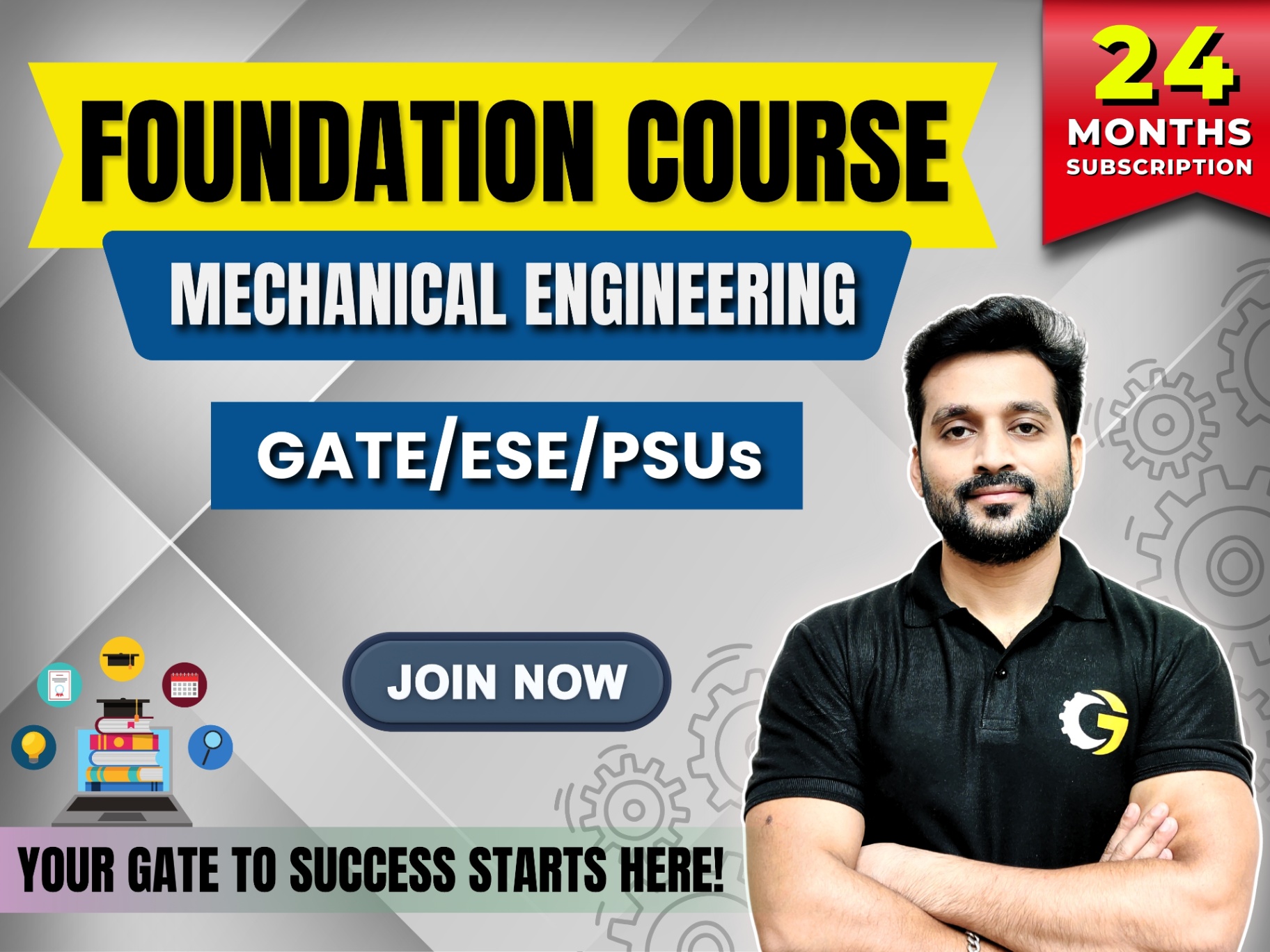 Prepare for GATE 2027 / ESE / ISRO / BARC & PSUs in Mechanical Engineering, and enhance your performance in University Exams with our comprehensive 2-year course. Get an Active subscription to access unlimited live and recorded sessions from India's Top Educator Gaurav Babu Sir & Team. Key Features: - Unlimited Live & Recorded Classes for GATE, ESE, PSUs & Placement Preparation. - 2000+ practice questions and quizzes - 200+ mock tests (GATE and PSUs-specific) - Effective Study Plan by Gaurav Babu sir - 24/7 access to Discussion Group For Doubts - 24/7 access to Offline downloads - 24/7 access to Recorded Sessions - Topic-wise Tests & Assignments with solutions - Individual Analysis of Test series - Personal Mentorship of Gaurav Babu sir - Learn from India's Top Educators - Practice Series After completion of the syllabus - Study materials and resources - Post Course Interview Program - 24 Months Subscription - No Cost EMIs available Benefits: - Improve GATE / ESE / ISRO / BARC ranking - Increase chances of PSU recruitment - Get help on university exams to perform outstandingly. - Enhance knowledge and skills in Mechanical Engineering - Gain the competitive edge in the job market Who can join? - College-going Mechanical Engineering students - GATE / ESE / ISRO / BARC aspirants - PSUs job seekers - Aiming for IITs /NITs for post-graduation - Mechanical Engineering professionals seeking career advancement - Targeted PSUs other than GATE Like BARC, ISRO, DRDO, ONGC, IOCL, NTPC, SSC JE, UPSC ESE, BPCL, etc.